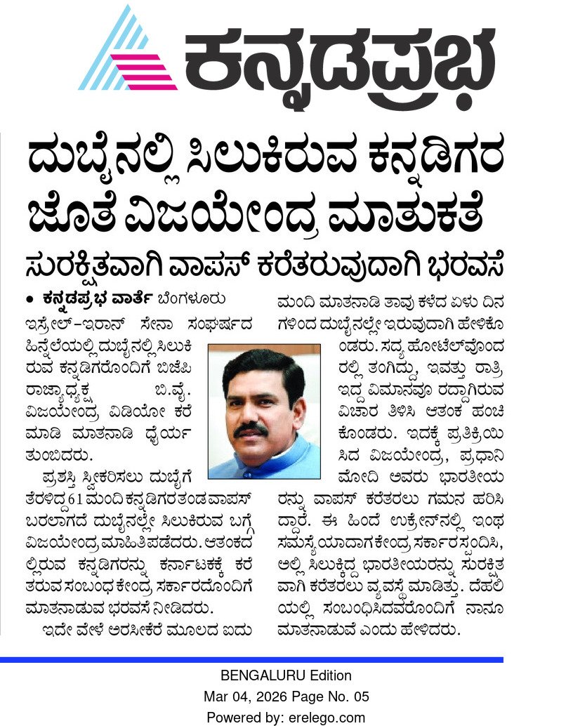 ಯಾವುದೇ ಅಭಿವೃದ್ಧಿ ಕಾಮಗಾರಿಗೆ ಚಾಲನೆ ನೀಡದೆ, ಒಂದೇ ಒಂದು ಹೊಸ ಯೋಜನೆ ಜಾರಿಗೊಳಿಸದೆ, ಗ್ಯಾರಂಟಿ ನೆಪದಲ್ಲಿ ಬೊಕ್ಕಸ ಬರಿದು ಮಾಡಿಕೊಂಡು ನೂರಾರು ನ್ಯೂನತೆ, ಹಲವಾರು ಯಡವಟ್ಟುಗಳೊಂದಿಗೆ ನಾಡಿನ ರೈತರು, ಶ್ರಮಿಕರು, ಮಹಿಳೆಯರು, ಯುವಕರು, ಉದ್ಯಮಿಗಳು, ಹಿಂದುಳಿದ ಸಮುದಾಯಗಳು ಸೇರಿದಂತೆ ಜನಸಾಮಾನ್ಯರ ಶಾಪಕ್ಕೆ ಗುರಿಯಾಗಿ 1 ವರ್ಷ ಪೂರೈಸಿದ @siddaramaiah ಅವರ ನೇತೃತ್ವದ @INCKarnataka ಸರ್ಕಾರದ ಅಭಿವೃದ್ಧಿ ಶೂನ್ಯ ಆಡಳಿತದ ಕುರಿತು ಕನ್ನಡಪ್ರಭ ದಿನಪತ್ರಿಕೆಯಲ್ಲಿ ನನ್ನ ವಿಶೇಷ ಲೇಖನ.