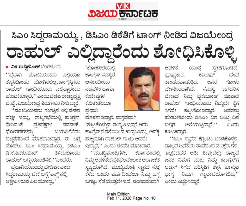 ರಾಜ್ಯ ಸರ್ಕಾರದ ವಿರುದ್ಧದ ಹೋರಾಟದಲ್ಲಿ ಬಿಜೆಪಿ ರಾಜ್ಯಾಧ್ಯಕ್ಷ ವಿಜಯೇಂದ್ರ ವಾಗ್ದಾಳಿ